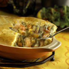 Stir in carrots, corn, broth and mustard. Heat to boiling; boil 1 minute. Remove from heat. Stir in bacon. Spoon into casserole.