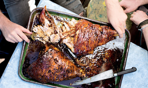 • 1 7–8-pound skin-on, bone-in pork picnic shoulder