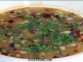 Servir la sopa y agregar unas hojas de cilantro cinceladas y cebolladas cortadas en diagonal.