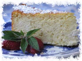 Sprinkle with powdered sugar and serve at room temperature. Garnish with sliced strawberries, if desired.