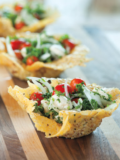 4. Place 1 Frico Basket onto each of 6 salad plates; evenly divide Parsley, Tomato & Mozzarella Salad into baskets just before serving.