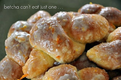 Mix grated orange rind with melted butter. Roll each thawed texas roll into a 9 inch rope. Tie in a loose knot. Roll each knot in melted butter and then in cinnamon sugar mixture. Place on a greased baking sheet. Cover with a clean towel or pam sprayed plastic wrap and let double in size. Bake at 350 for 15 to 20 minutes or until golden brown. Brush with citrus glaze while still slightly warm.