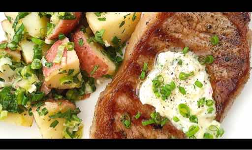 Grilled Steaks with Garlic Chive Butter and French-Style Potato Salad