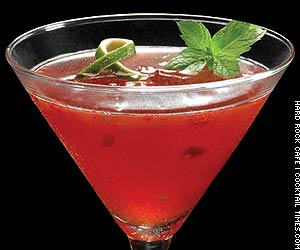 Combine the vodka, lime juice, Simple Syrup, cherry juice and mint leaves in a shaker with ice. Shake until chilled and strain into 4 martini glasses. Top each glass with champagne and serve.