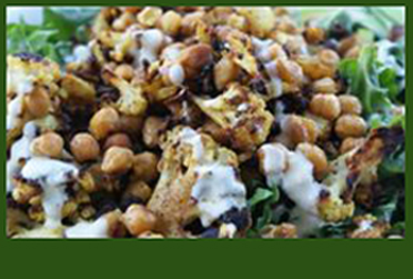 Put the prepared spinach in a serving bowl, tip the cauliflower and chickpeas on top, then drizzle the yogurt dressing on top.
