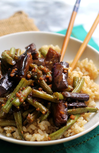 Szechuan Spicy Garlic Eggplant and String Bean Stir Fry