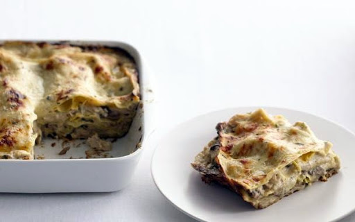 Add 3 lasagne sheets, overlapping slightly, and one third of mushroom filling, spreading evenly, then sprinkle one fourth of Gruyere over top. Repeat 2 times.