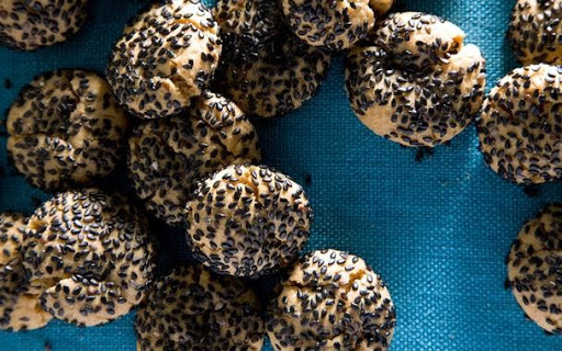 Roll level teaspoons of dough into balls, then roll in seeds to coat.