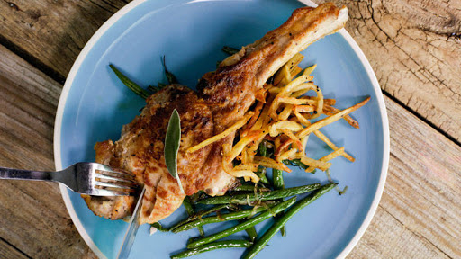 Veal Chops Valdostana Valdostana with Oven Frites and Haricots Verts