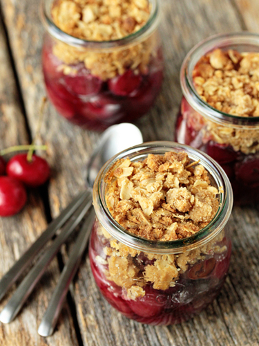 Serve warm or at room temperature. Make these cherry crisps extra special by topping each serving with a scoop of vanilla ice cream.