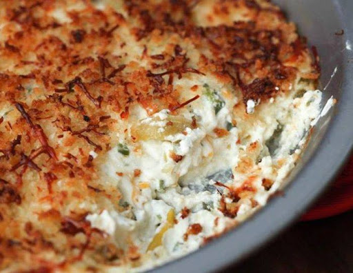 Transfer to an oven proof dish, perhaps a 9 X 13. The size of the dish depends on how thick you want the dip, just over 1 inch or inch and a half is good. You could also put in a small crock pot and start warming an hour before serving. The key is to make sure all the ingredients have melded together.