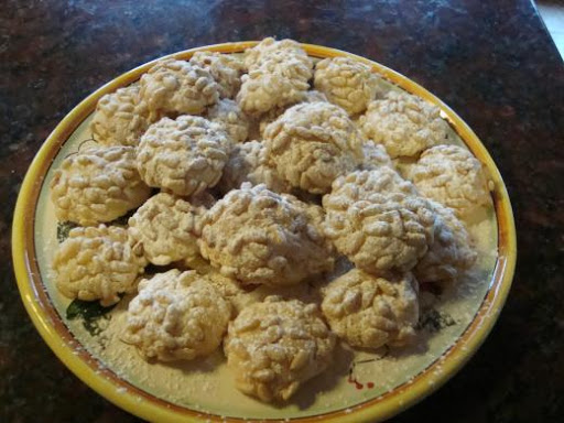 Using a spoon and slightly wet hands, scoop a small spoonful of the dough, shape into a ball, and place this into the bowl of pignoli (pine nuts).