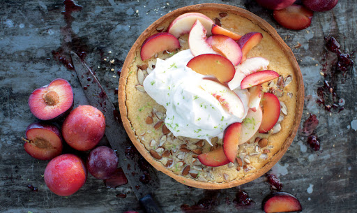 Almond Tart with Stone Fruit and Lime Meringue