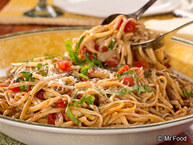 Bring to a boil over medium high heat, reduce heat to low, and simmer 10 minutes, stirring every 2 to 3 minutes, or until liquid is almost gone. Stir in basil and serve garnished with Parmesan cheese.