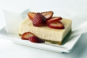 BAKE 40 min. or until center is almost set. Mix remaining sour cream, sugar and vanilla; carefully spread over cheesecake. Bake 10 min. Cool completely. Refrigerate 4 hours. Use foil handles to lift cheesecake from pan just before serving; top with berries.