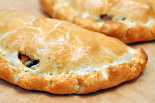 Moisten the edges of the dough with beaten egg. With cool hands, fold the pastry over and crimp the edges. (Use any crimping technique you like, just make sure it is well sealed.) Cut a small slit in the top of each pasty. Brush all over with beaten egg.