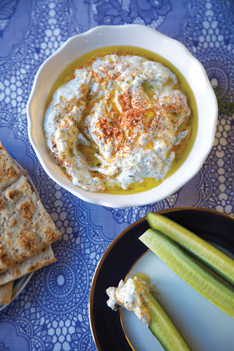 Grated cucumber marries with chopped herbs and aromatics in this iconic Greek yogurt condiment. Serve as a dip or alongside meat or vegetables.