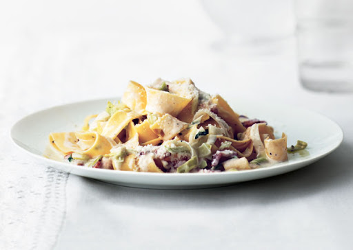 This twist on pasta carbonara is sweet from leeks and rich thanks to cream (in place of eggs).