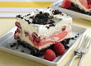 Spread chocolate fudge sauce over crust. Spoon vanilla ice cream over chocolate. Place spoonfuls of sherbet randomly over ice cream; swirl gently into ice cream. Top with raspberries; press gently into sherbet. Spread whipped topping on top; top with reserved crumbs. Cover; freeze 6 hours or overnight.