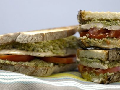 Cook's Note: The pesto makes more than enough for the sandwiches. It can be stored in the refrigerator in an airtight container for up to 4 days.
