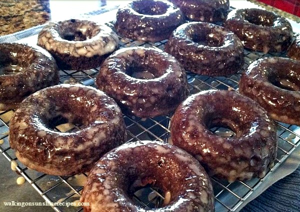 Remove the donuts from the pan and allow to cool on a baking rack before drizzling the glaze on top.