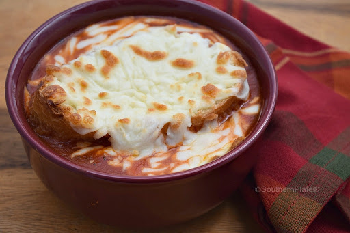 Bring just to a boil over medium high heat and then reduce temperature to low, stirring every now and then. Allow to simmer for 20-30 minutes, or until meatballs are heated through and soup has developed full flavor. To serve: Cut 1 inch slices of Italian bread and place on baking sheet. Place in 350 oven until toasted. Ladle soup into bowls and top each with a slice of bread and a liberal sprinkling of cheese. Place all bowls back on baking sheet and put in oven on low broil. Watch very carefully and remove once cheese is lightly browned and bubbly on top. Serve immediately but warn folks that the bowls are hot :). Optional ingredient ideas: Add in your favorite pizza toppings! For example, sauteed onion, bell pepper, etc
