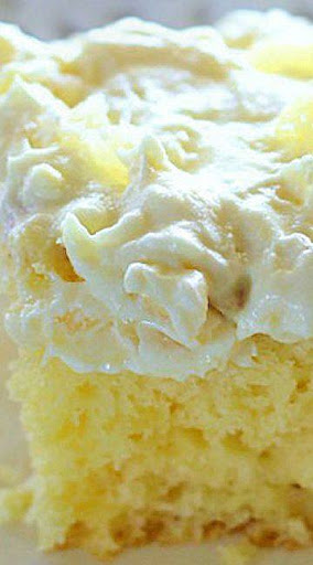 A moist and fluffy yellow cake incorporated with pineapples, covered in a sweet, creamy frosting. It's so good I always get requests for the recipe. Enjoy!