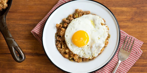 A few minutes before the hash is done, heat a large nonstick skillet over medium heat.