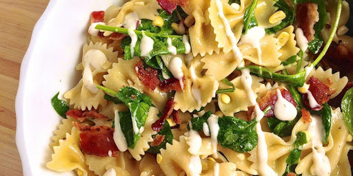 Bacon, Corn, Spinach, and Ranch Pasta Salad