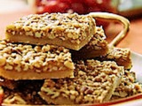 Remove from pan by pulling up the foil sides and putting it on a cutting board. Cut bars in desired size with a sharp knife and arrange them on a serving tray. Can be stored in an airtight container up to 2 days.