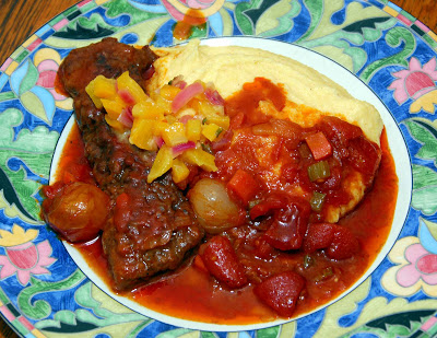 For the chowchow, saute bell pepper, red onion, and 1 Tbsp. garlic in olive oil in a skillet over medium-high heat until softened, 6-7 minutes. Remove from heat.