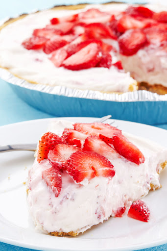 Pour mixture into prepared pie crust, smoothing over top with a rubber spatula. Slice remaining 1/2 cup strawberries and arrange on top of cheesecake. Cover with plastic wrap and refrigerate until firm, at least 4 hours.