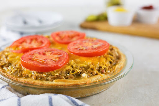 If anyone around your house is craving burgers, this Skinny Cheeseburger Pie should take care of that! You could probably eat this every night of the week, but it’s so gorgeous that you’ll almost want to save it for guests. You can even make this dinner a little more fabulously fun by serving it with your family’s fave burger toppings on the side… Toss a little lettuce, pickle, or onions on top for the full-on cheeseburger experience!