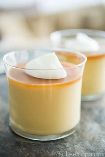 Remove the pan from the heat and add the butter and rum. Strain the custard through a fine strainer to remove any big lumps that might have formed, and portion the custard into ramekins. Cover the ramekins with plastic wrap and chill the custard for at least 3 hours.