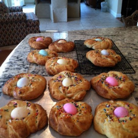 Pane de Pasqua all Uovo or Easter Bread is a traditional Easter bread recipe that is often served during Easter celebratory events. Filled with the tart flavors of lemon zest and juice, this sweet bread recipe packs a little bit of a pucker and is perfect for any celebratory event. Topped with the fun sprinkles of your choice, this recipe is great to get the kids involved.