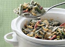 Spray inside of 3- to 4-quart slow cooker with cooking spray. In large bowl, mix all ingredients except onions. Stir in half of the onions; spoon mixture into slow cooker.