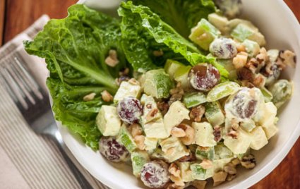 To serve, place lettuce onto a large platter or individual serving plates and top with apple mixture.