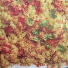 I watched Celebrity Chef Lidia Bastianich making this dinner on her PBS television cooking show, very recently. I couldn't find her recipe, on the internet, but I managed to figure out how to make it-- and we loved it. The tomato sauce is very simple to make, with a nice "kick" from red pepper flakes and Italian sausage. The sardinian gnocchi was my first attempt at making any kind of pasta, from scratch. It was super simple to make-- each golden "nugget" is a dumpling (gnocchi) made with semolina flour, water and saffron (for color). They're a little time-consuming, but easy enough for kids to do. We loved this dish, and I hope that my interpretation will do both Lidia and fellow Sardinians proud, as this was my first (but not last) time making this dish. I will be posting how to make this delicious dinner on my food blog.