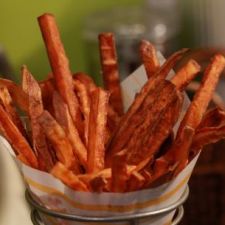 Bake fries in the preheated oven, turning once until cooked through and crisp, 20 to 25 minutes.