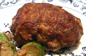 Place the meat in a greased loaf pan, or shape in 6 mini loaves and place in a foil lined 9x13" baking pan. Brush or spread on the topping. Bake at 375º 45 to 60 minutes for a single large loaf or about 30-35 minutes for the mini loaves or until the internal temperature reads 140-145º.