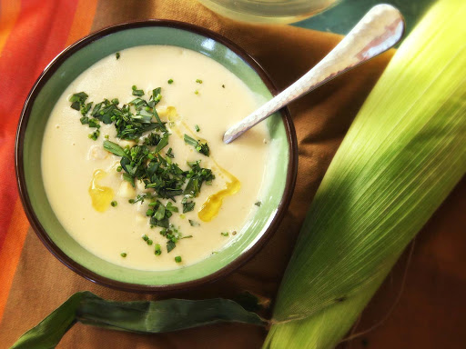 There's nothing that beats the simple, sweet pleasure of corn on the cob, but a good corn soup comes in a close second. As an added benefit, it also eliminates the need to pick at your teeth to remove stray corn skins after you're done with it, an act that is as annoying for the picker as it is unsexy for the one who must observe the picker in the act of picking. In other words, corn soup is the corn preparation of choice for date nights.