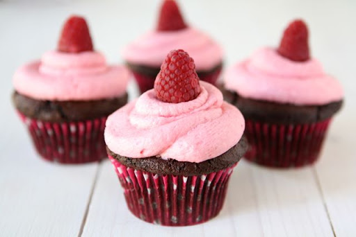 Dark Chocolate Cupcakes with Raspberry Buttercream Frosting
