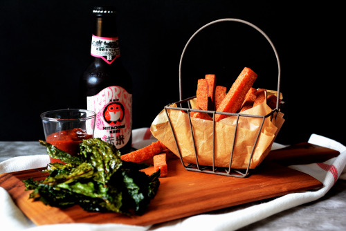 Spam Fries & Kale Chips with Bloody Mary Dip