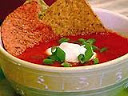 In a small saucepan, combine soup and salsa. Set pan over medium heat and bring to a simmer. Remove from heat and ladle soup into 4 bowls. Top with tortilla chips, sour cream, and scallions just before serving.