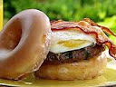 Place burger patties on English muffins or buns, and if desired, on glazed donuts, as the buns. Top each burger with 2 pieces of bacon and a fried egg.