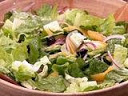 Toss the lettuce, onion and olives together with the dressing in a serving bowl. Scatter the orange segments over the salad and serve.