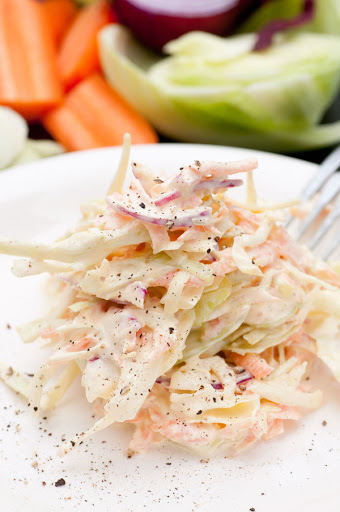 5.Pour dressing over cabbage and carrots and toss so that everything is thoroughly coated.