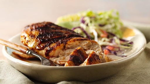 Carefully brush oil on grill rack. Place chicken, skin sides up, on grill over medium heat. Cover grill; cook 25 minutes, turning once, until juice of chicken is clear when thickest part is cut to bone (165°F).