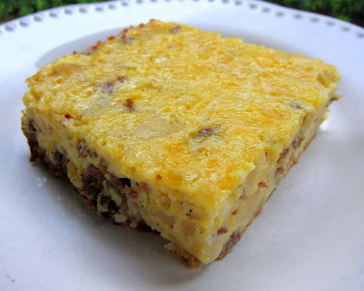 Stir together eggs, cheese, and next 4 ingredients; pour evenly over sausage mixture, stirring well. Cover and chill 8 hours.