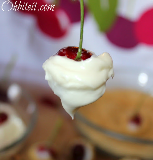 Dip a Cherry or a few, into the sweetened Cream Cheese